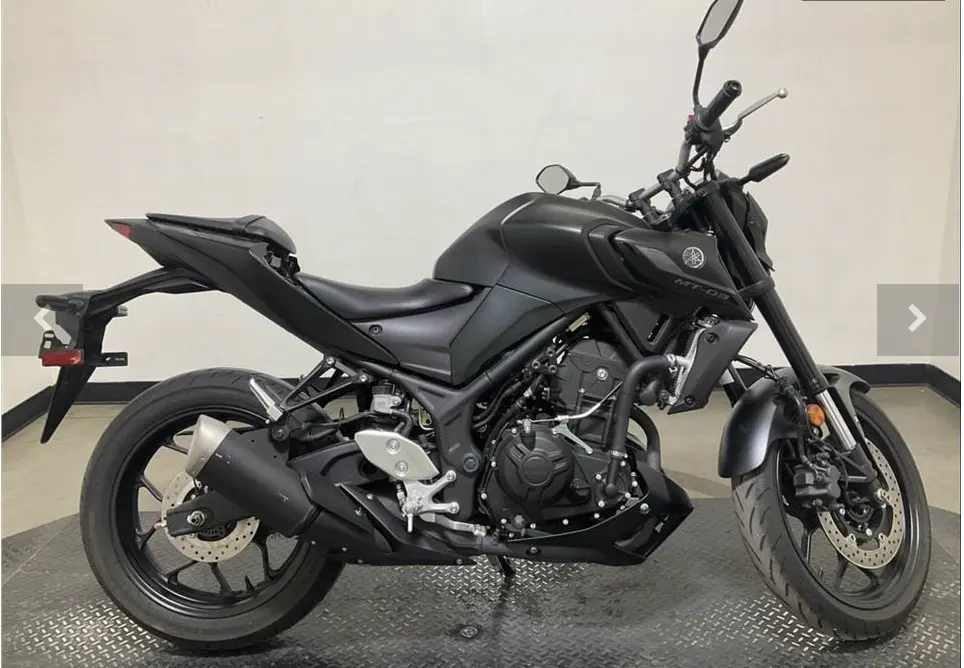 The 2020 Yamaha MT-03 delivers a punchy yet refined ride, wrapping serious performance and aggressive styling into a compact, nimble package. Its 321-cc liquid-cooled twin engine gives smooth, usable power across the rev range — enough thrust for lively city riding, spirited canyon carving, or confident highway merging. With a lightweight diamond-type frame, inverted front fork, and long rear swingarm combined with a sporty geometry, the MT-03 turns and brakes with agility and control, offering that “big-bike feel” without overwhelming bulk or weight. The styling is bold and modern — a wide-shouldered fuel tank, sharply sculpted bodywork, twin “slanted-eye” position lights with a central LED headlight, and sleek LED indicators give it a predatory, street-fighter presence. Ergonomics are friendly too: a relatively low seat and upright riding posture make the bike accessible to a wide range of riders, while a responsive 6-speed gearbox and light clutch deliver an intuitive, fun, and confidence-instilling ride.