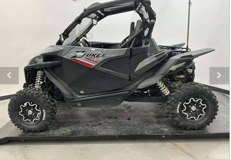 The 2023 CFMOTO ZFORCE 950 Sport is built to deliver high-adrenaline off-road performance without compromise. Powered by a liquid-cooled 963 cc V-Twin engine, it generates around 85-90 hp and is paired with a CVT automatic and selectable 2WD/4WD/differential-lock drive modes. With a 60-inch width for trail agility, full independent suspension with ~11″ of travel front and rear, 27-inch tires, and a ground clearance of about 12″, this sport UTV is equally at home carving dirt tracks or powering through rugged terrain. Add in premium features like electric power steering, full LED lighting, a 3,500-lb winch, and adjustable suspension, and you’ve got a machine ready for serious off-road fun.