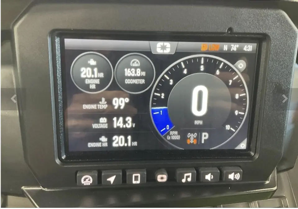 Full doors, reinforced cast-aluminum wheels, 30×10-14 tires front & rear, high-end audio/technology package including 7-inch Ride Command® display and built-in GPS/USB/Bluetooth in many Ultimate builds.